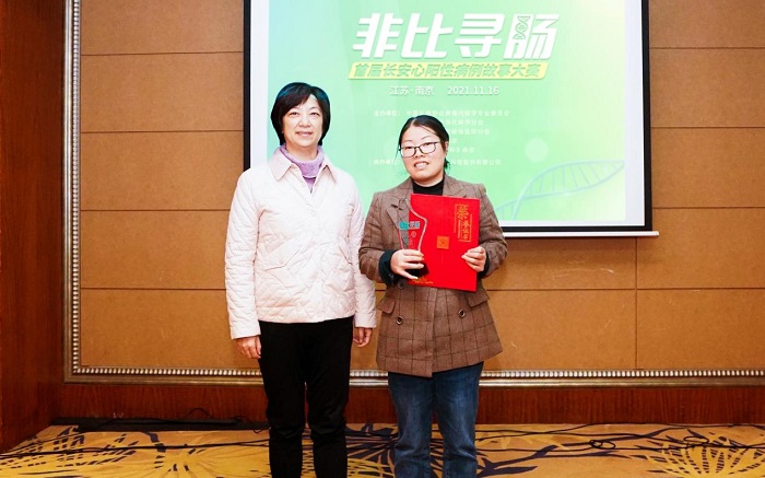 經(jīng)過(guò)激烈的角逐,最后來(lái)自江蘇省省級(jí)機(jī)關(guān)醫(yī)院的選手尹冬華奪得了冠軍獲得專家評(píng)審團(tuán)的一致認(rèn)可,成功奪得“非比尋腸”首屆長(zhǎng)安心病例故事大賽華東區(qū)決賽冠軍,從本次大會(huì)主席周衛(wèi)紅主任手中接過(guò)了頒發(fā)的獎(jiǎng)狀。