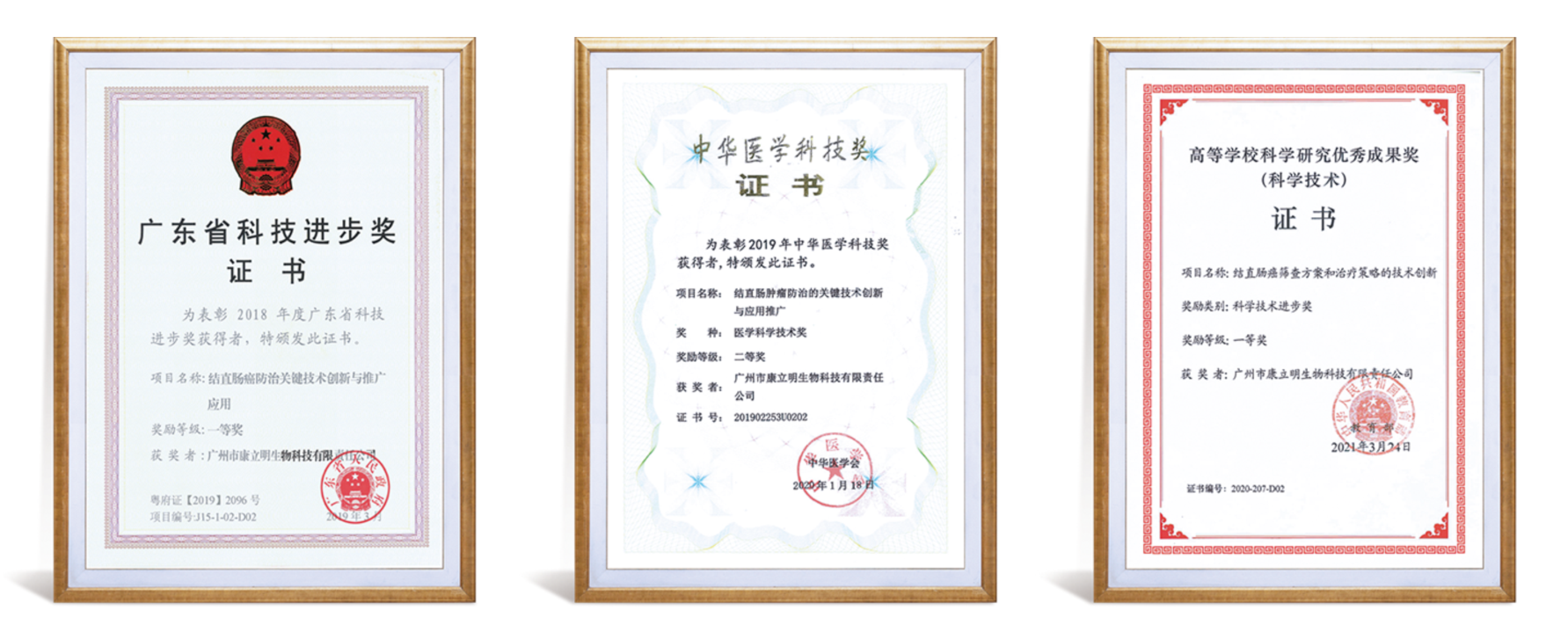 康立明生物在企業(yè)發(fā)展層面也屢獲殊榮,公司曾先后被評為廣州創(chuàng)新型中小企業(yè)、廣東省專精特新中小企業(yè),這些榮譽都是對公司創(chuàng)新能力、市場競爭力以及發(fā)展?jié)摿Φ母叨日J可。除此之外,公司憑借卓越的科研成果和實力,榮獲了2018年廣東省科技進步獎一等獎、2019年中華醫(yī)學(xué)科技獎二等獎、2020年教育部科學(xué)技術(shù)進步獎一等獎,這些重要獎項是對康立明生物整個團隊創(chuàng)新能力的肯定。