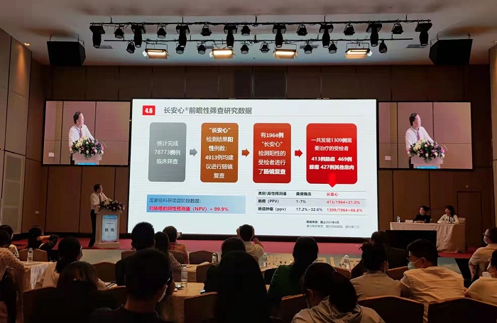 廣東省人民醫(yī)院協(xié)和醫(yī)療中心主任、廣東省醫(yī)院協(xié)會(huì)醫(yī)院健康管理專委會(huì)主任委員陳煉以《中國癌癥早篩的機(jī)遇與挑戰(zhàn)》為題作主題演講時(shí),重點(diǎn)介紹了糞便SDC2基因甲基化PCR檢測對(duì)結(jié)直腸癌早期診斷的效果。