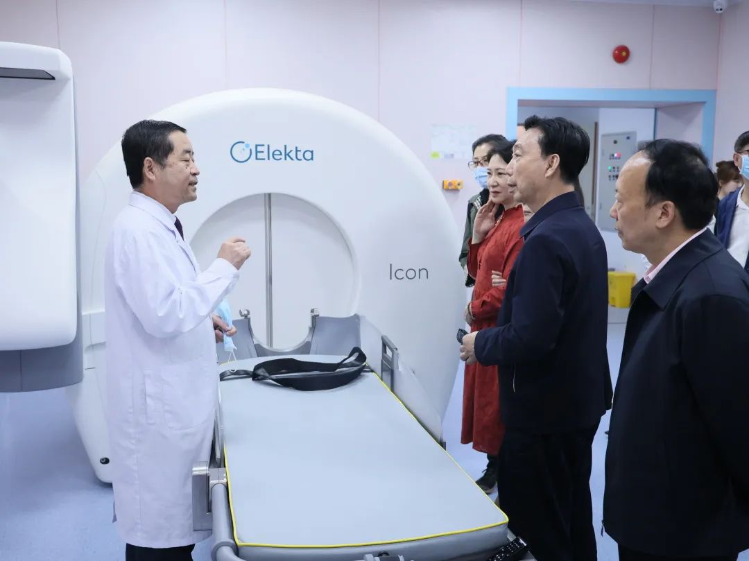 在參觀中,白書忠部長還了解到前海人壽廣州總醫(yī)院引入了華南地區(qū)最新型的頭部伽瑪?shù)?,這是目前國際上最先進(jìn)的腫瘤放療技術(shù)之一,能夠在治療頭部腫瘤的同時(shí)最大程度地保護(hù)患者的健康組織。